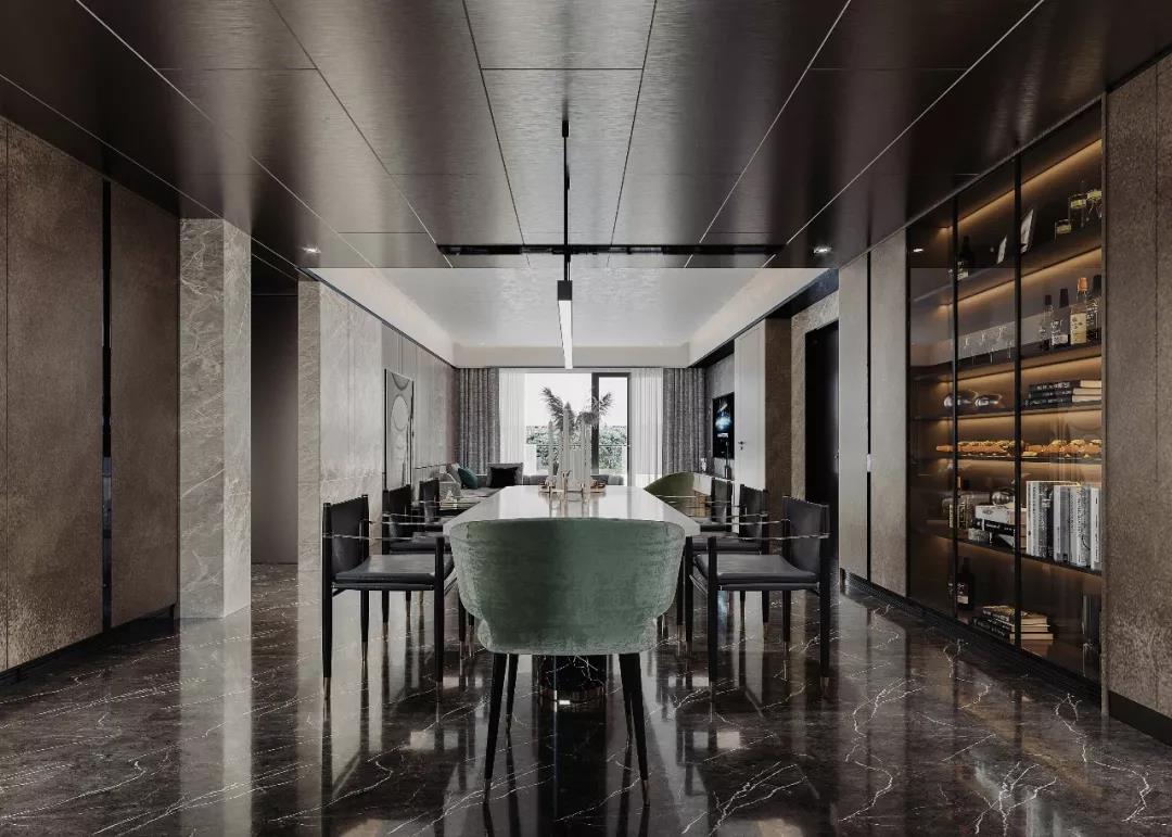在全鋁餐邊柜里加入極簡玻璃門